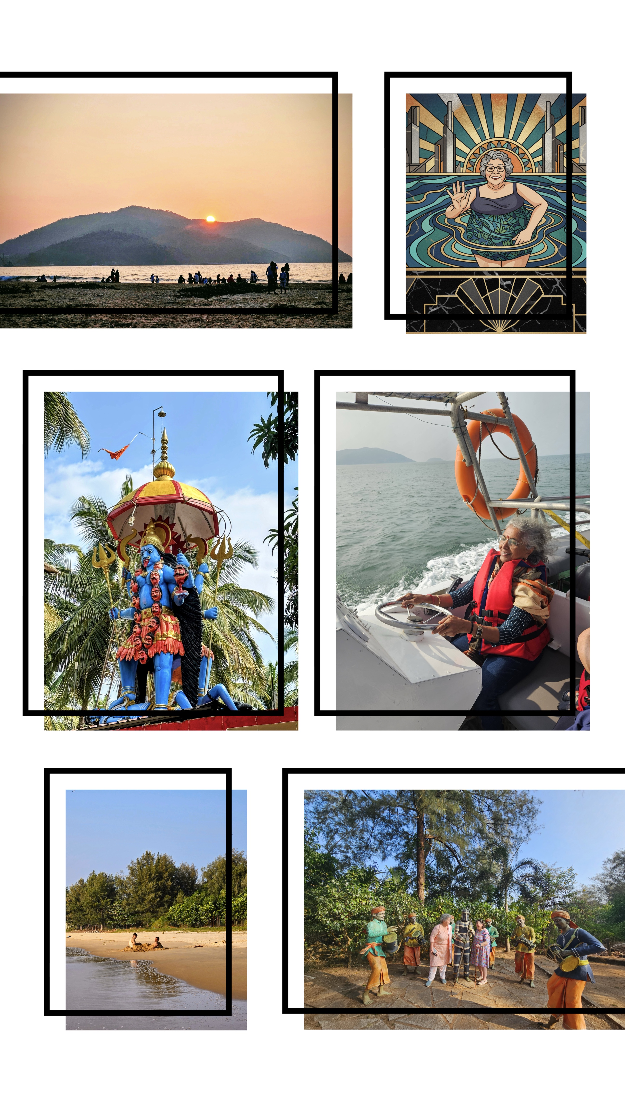 Clearly, it was not their first time at this particular rodeo. The Karwar taxi driver laid out our mission plan. First, we had to take a union taxi from our hotel into town and ask to be dropped at the bus stop. We were to wait there five minutes, then casually mosey across the street to the grocery shop before calling our new driver. (Because, he confided to Jaya, if the local drivers spotted him, they would beat him up.) All went well, although the Goa taxi driver was clearly suspicious. He asked when our bus was arriving, and from which direction. Jaya played it cool and said she was still confirming. The Goa union taxi driver let us out at the bus stop but then circled around to check on us again. We waved. Just after that, our Karwar driver showed up and we hustled into his cab.