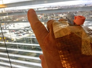 I showed him the one spot on my hand where a cannula had (after several false starts) been inserted.