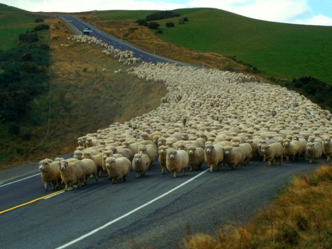 • C. Rev your engine and floor it. You pay your road tax, and you sincerely doubt those wooly freeloaders have coughed up a single pence, so they can bloody well just get out of your way.