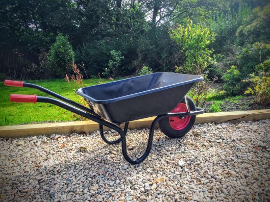 I remember sliding downhill on my dignity, flat on my back as rocks flew past. Even as rapidly moving bits of me banged into immovable bits of garden, I couldn’t help wondering what had become of the wheelbarrow. I didn’t have long to wonder, because the wheelbarrow dropped from the skies, upside down. I just had time to think how NOT good this was, when it smashed across my legs, followed by the ridiculously large load of cut sticks and branches.
