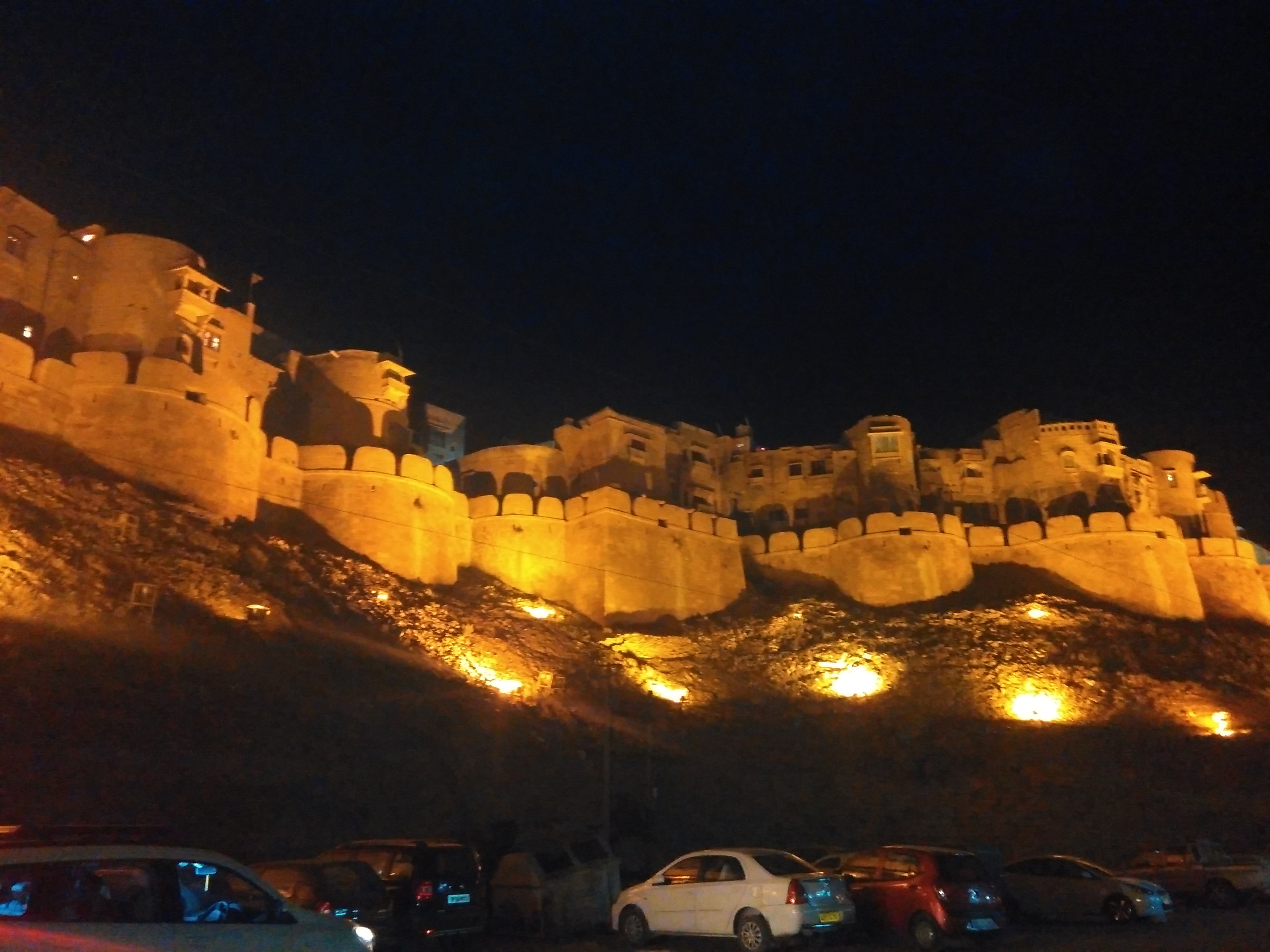 Finally, we reached the series of roundabouts marking the approach to Jaisalmer Fort, its twelfth-century walls glowing amber against the horizon.