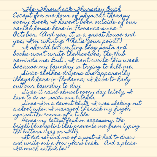 Your handwriting is lovely, but your poor finger. Whacking a digit when you are performing vigourous laundry manoeuvers is a rotten consequence for doing your best without proper drying accoutrements!