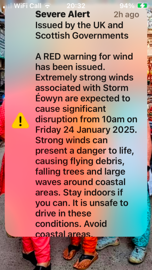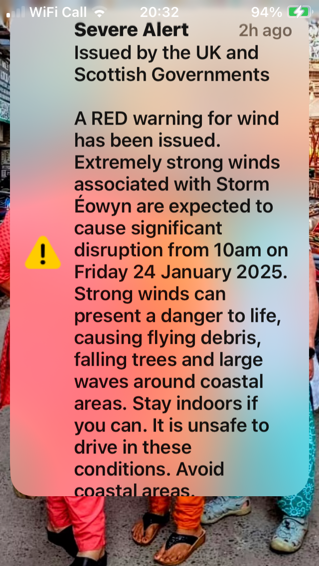 Suddenly, every mobile in the place started playing an incredibly loud siren. Our phone screens all flashed up a Red Alert notice, warning us to get home and stay there. (My favorite part was the last line, ordering us to stay away from coastal areas. On an island.)
